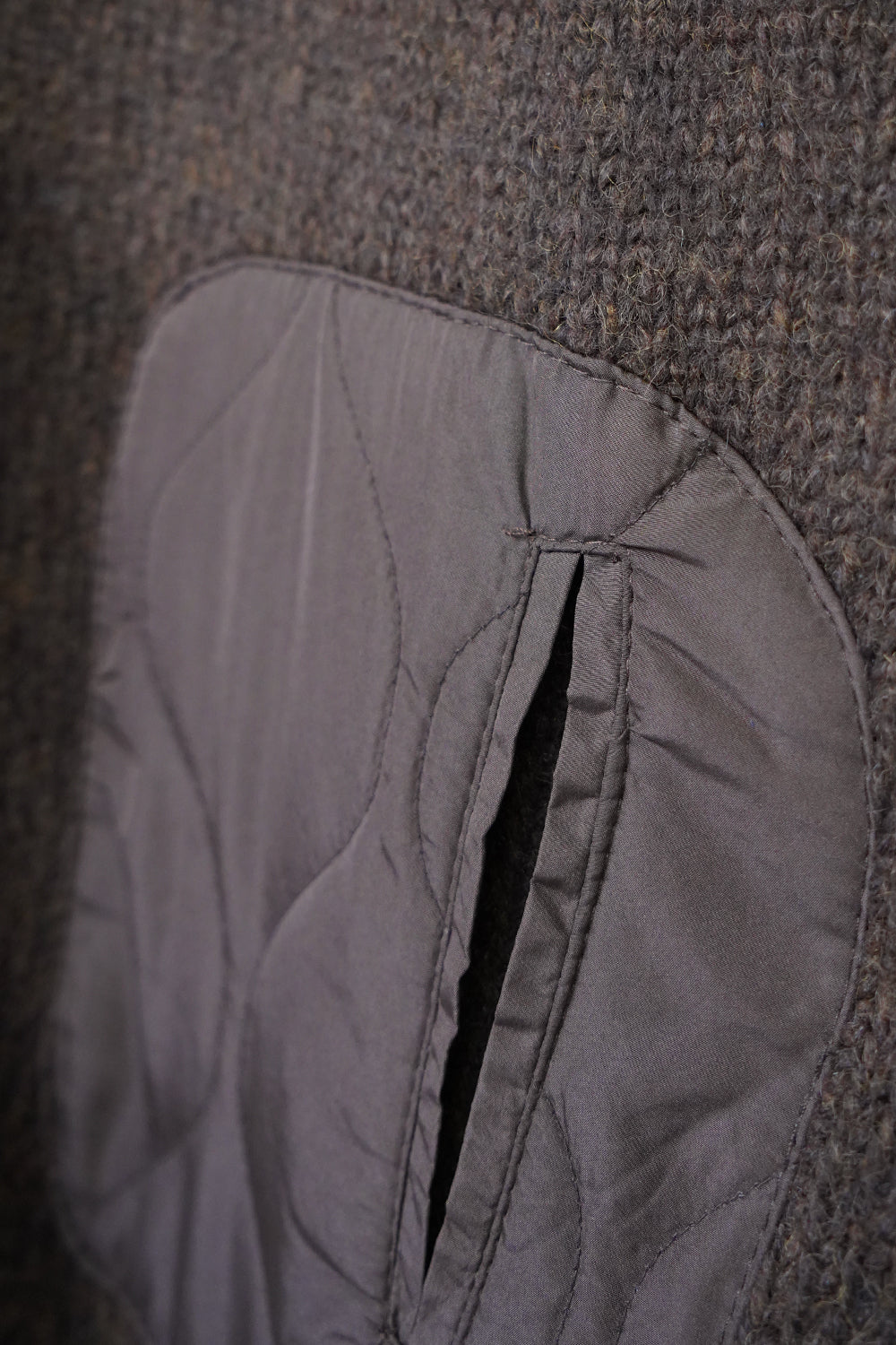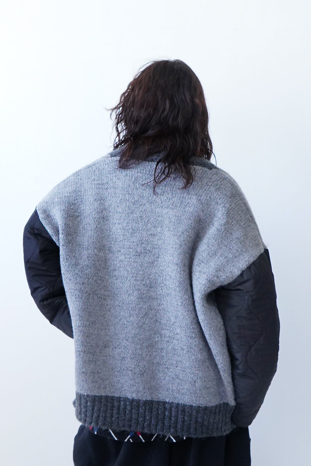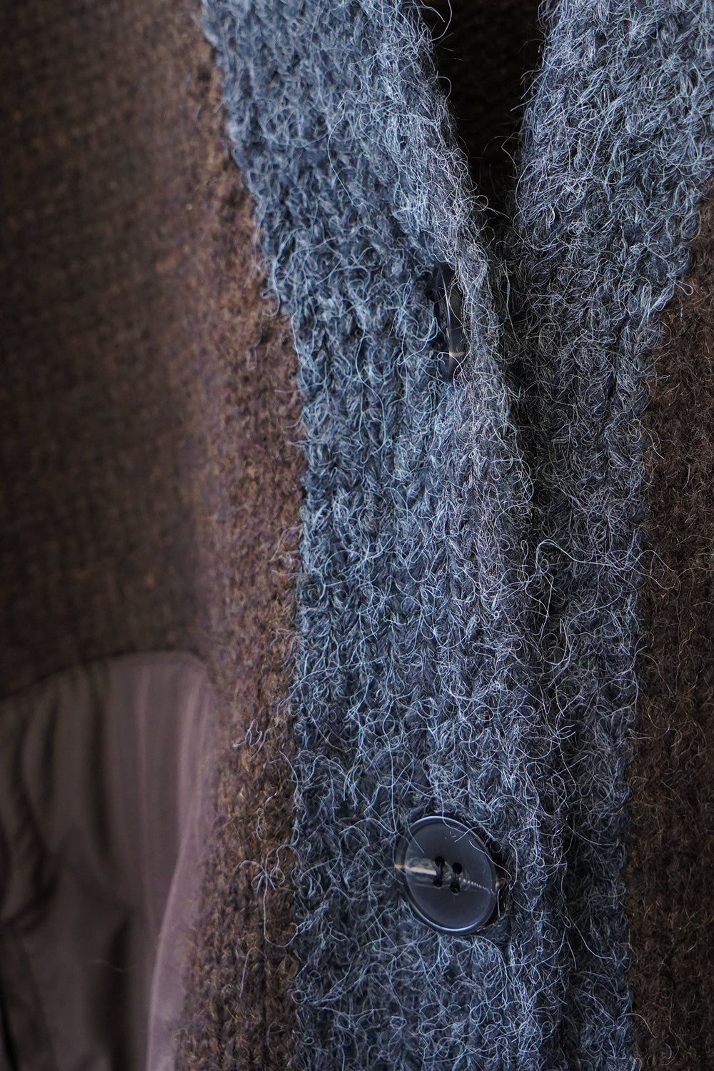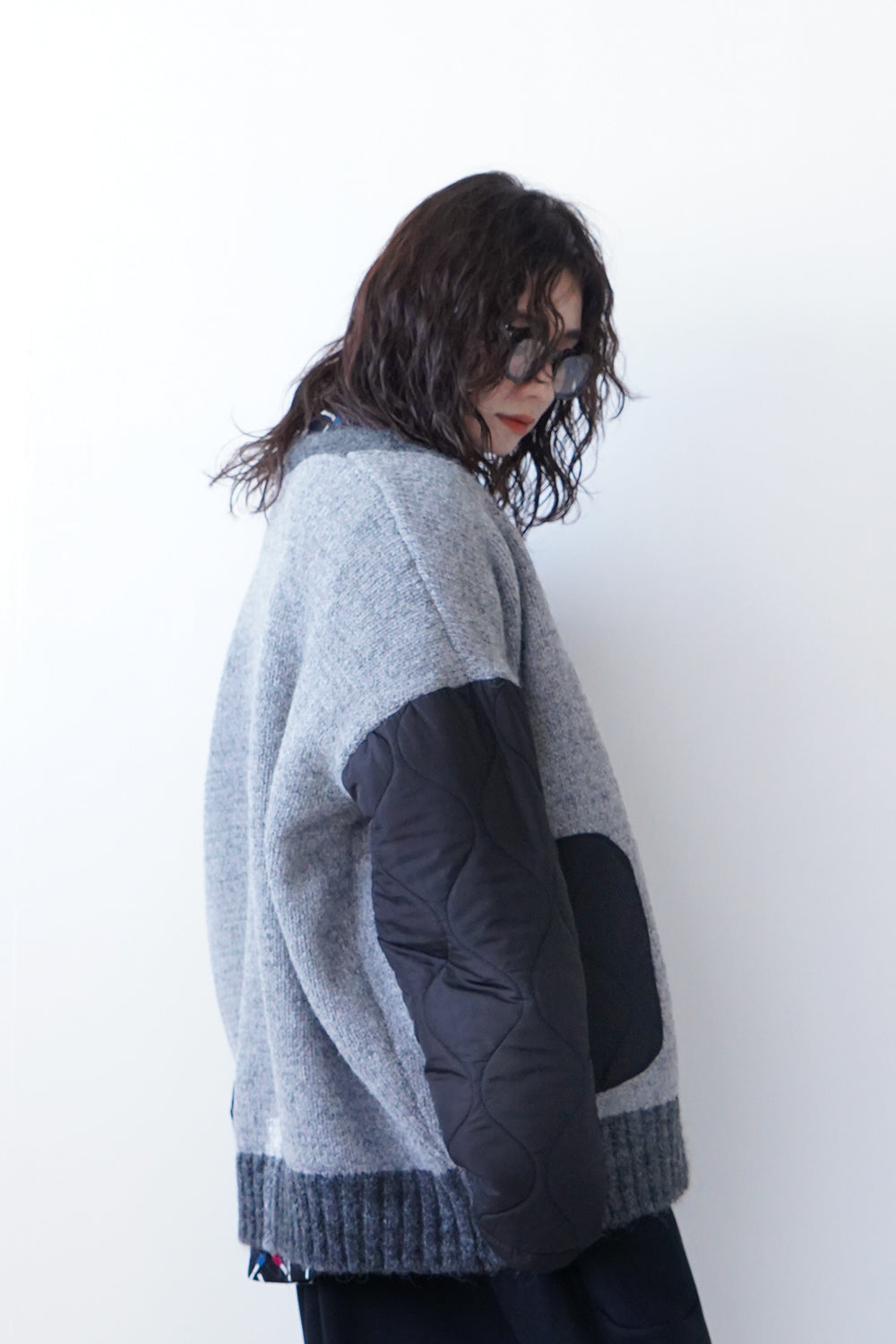 キルトとニットがドッキングした珍しいデザインのカーディガン。配色使いやくり抜きポケットなどデザインポイントが詰まった1枚。たっぷりの身幅とお尻まで隠れる丈感が体系カバーにも◎首元は深めのVネックですっきりと大人らしい印象に。