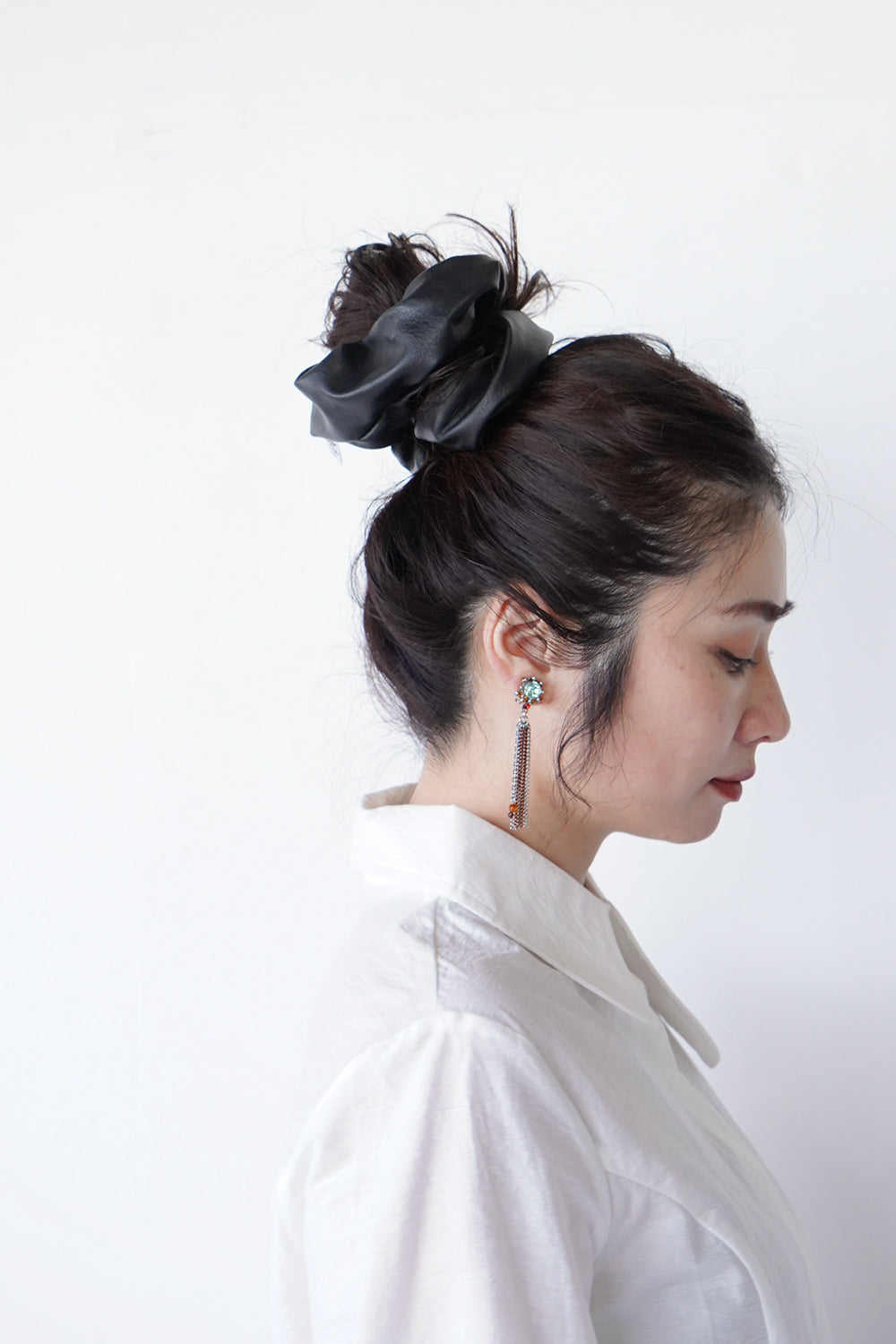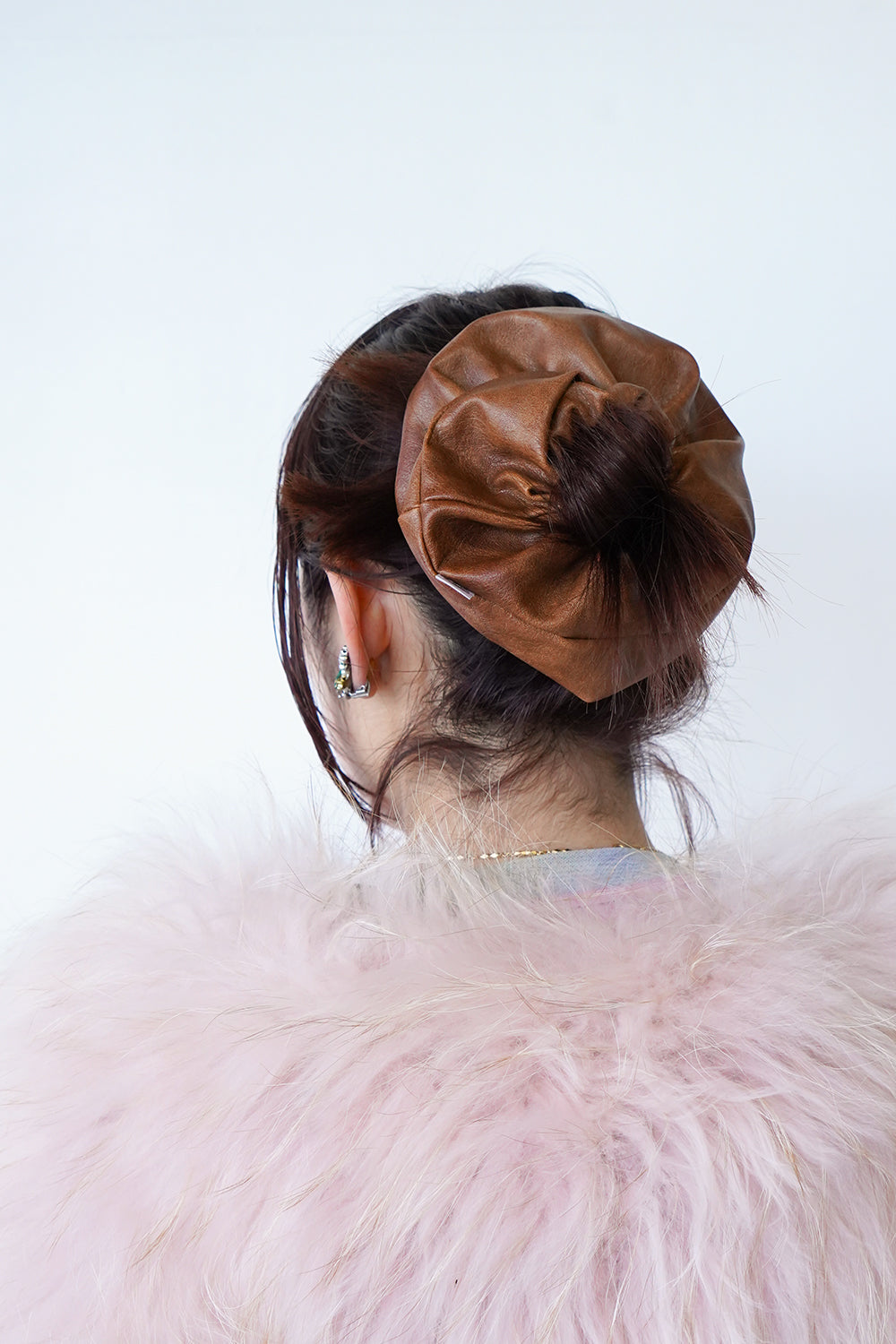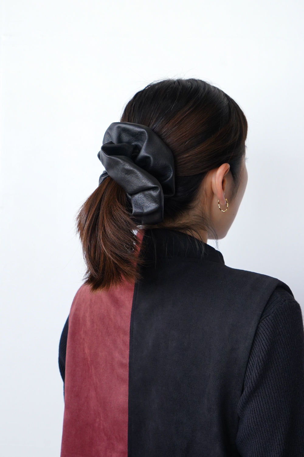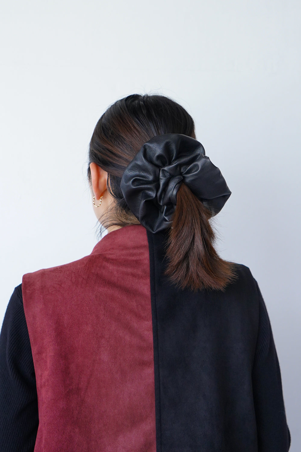 大人かっこいいフェイクレザーのビッグシュシュ。しっかりと厚みのある素材でマットな質感。ビッグサイズなのでコーデのポイントになります。ベーシックカラーの落ち着いた色展開は秋冬のスタイリングとの相性も◎