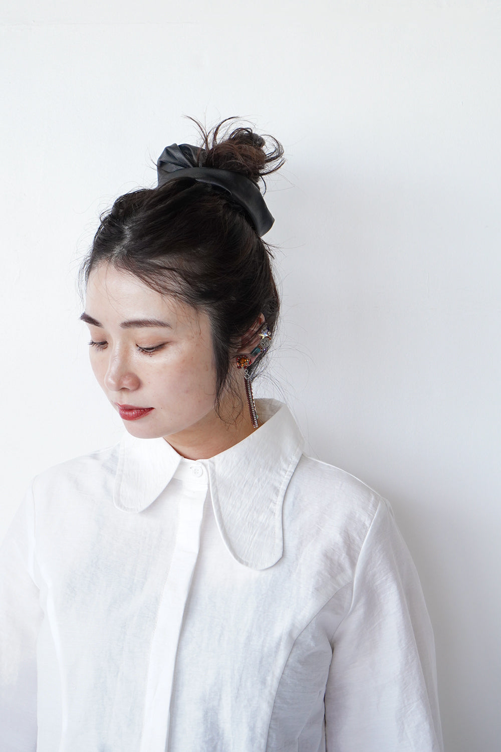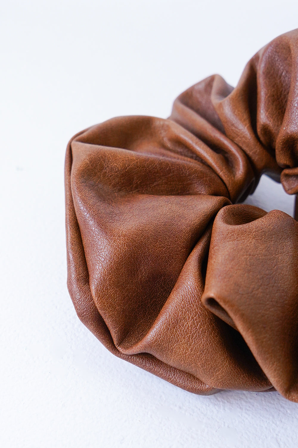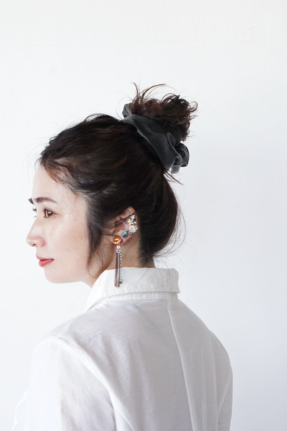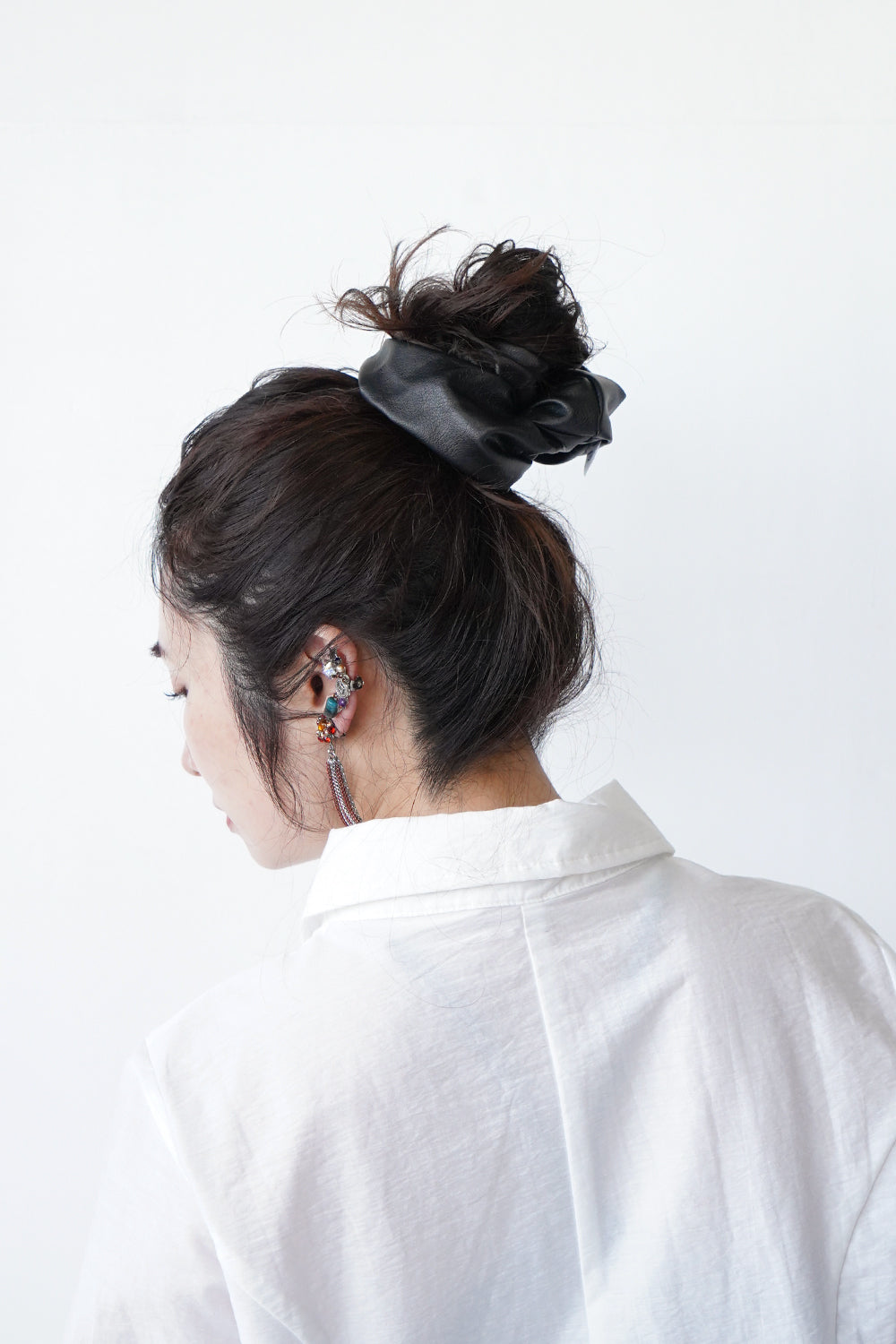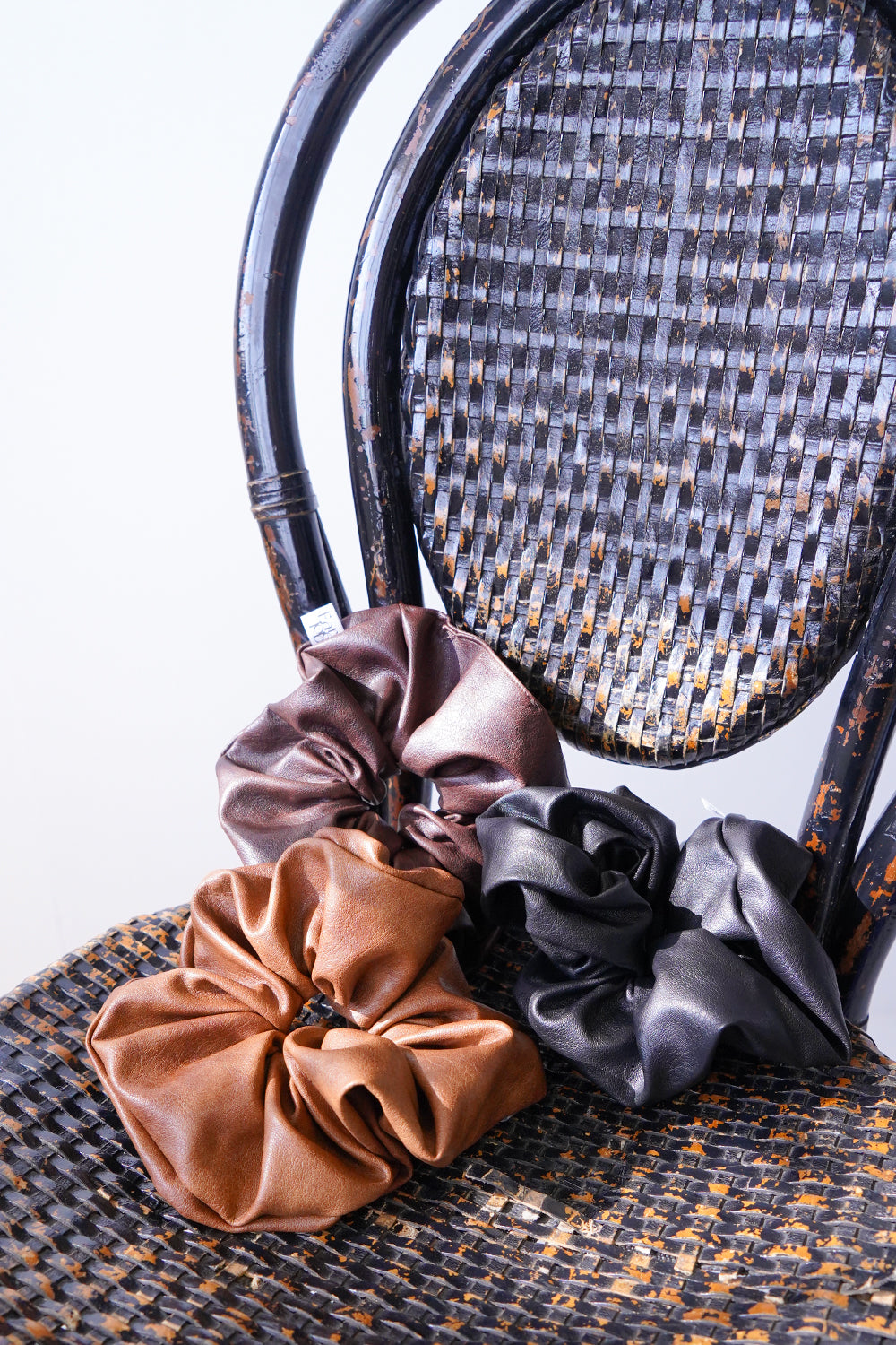 大人かっこいいフェイクレザーのビッグシュシュ。しっかりと厚みのある素材でマットな質感。ビッグサイズなのでコーデのポイントになります。ベーシックカラーの落ち着いた色展開は秋冬のスタイリングとの相性も◎