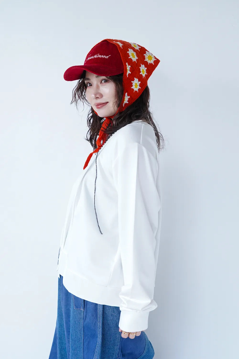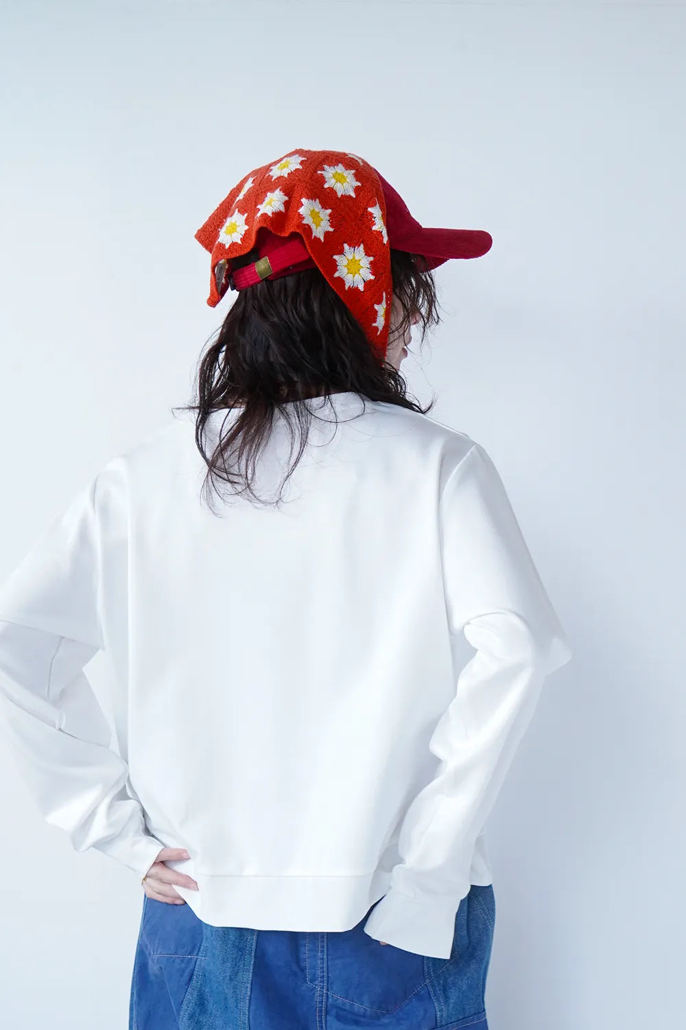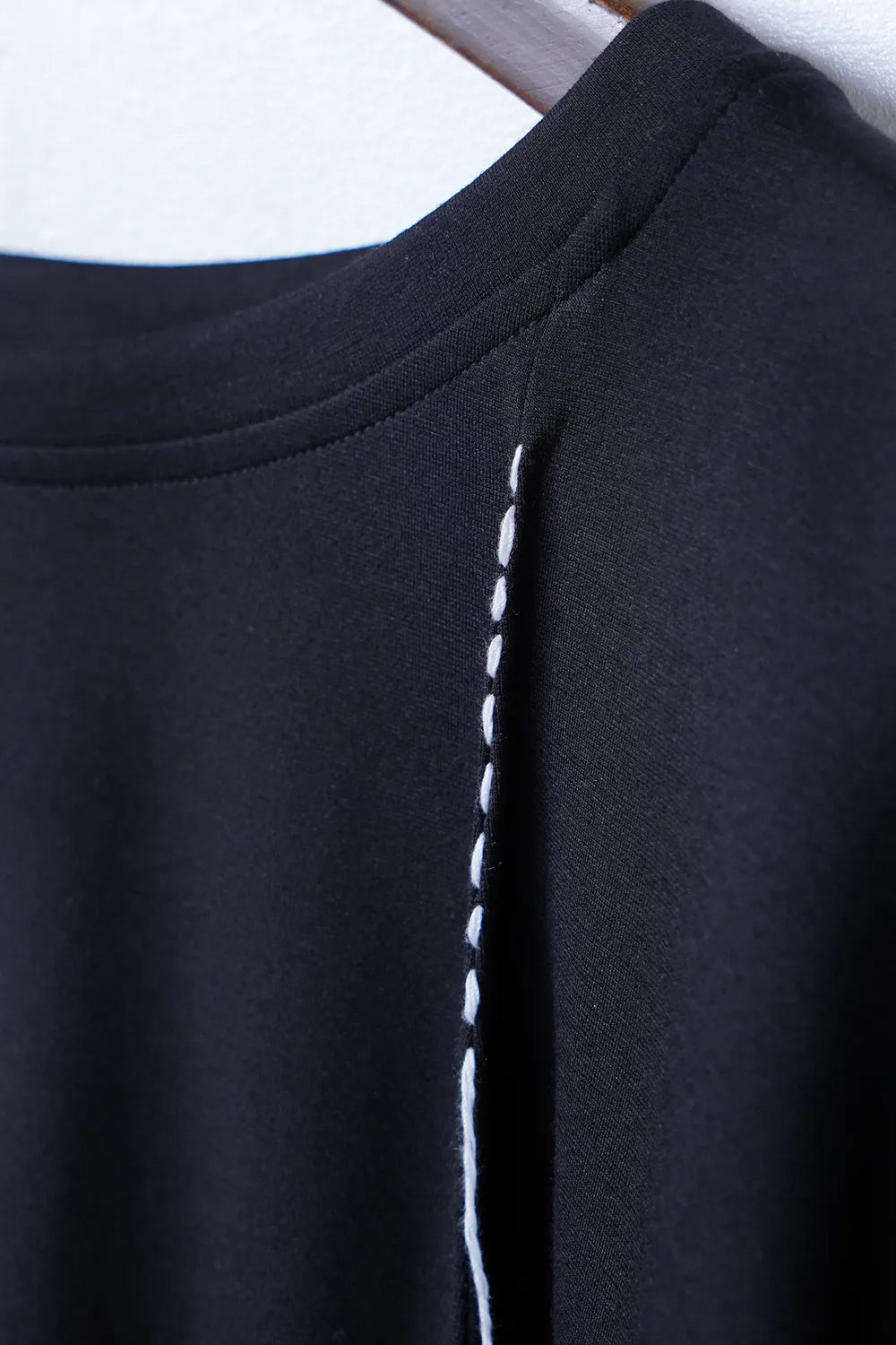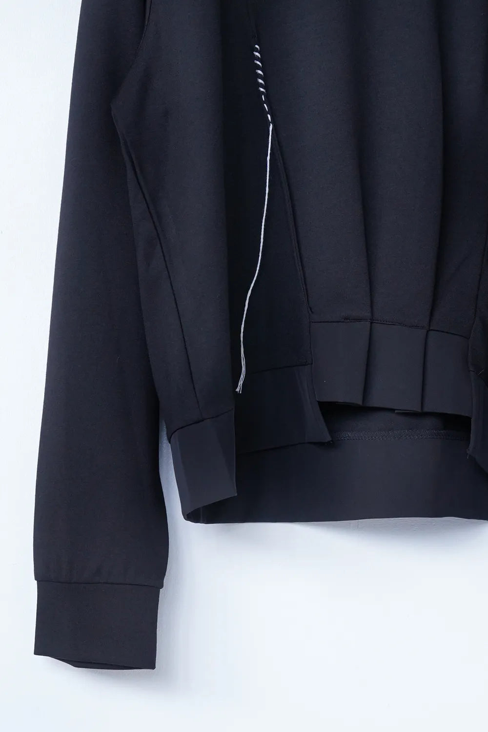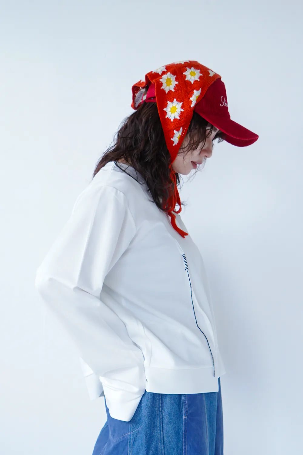 ステッチデザインがユニークなプルオーバー。サイズ感はゆったりとしていてポリエステル混のツルっとした素材感でややストレッチが効いています。裾にはタックが施されていてさりげないデザインポイントに◎薄手なので春夏向きのアイテムになります。