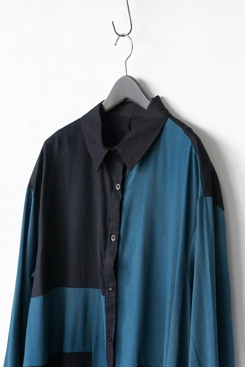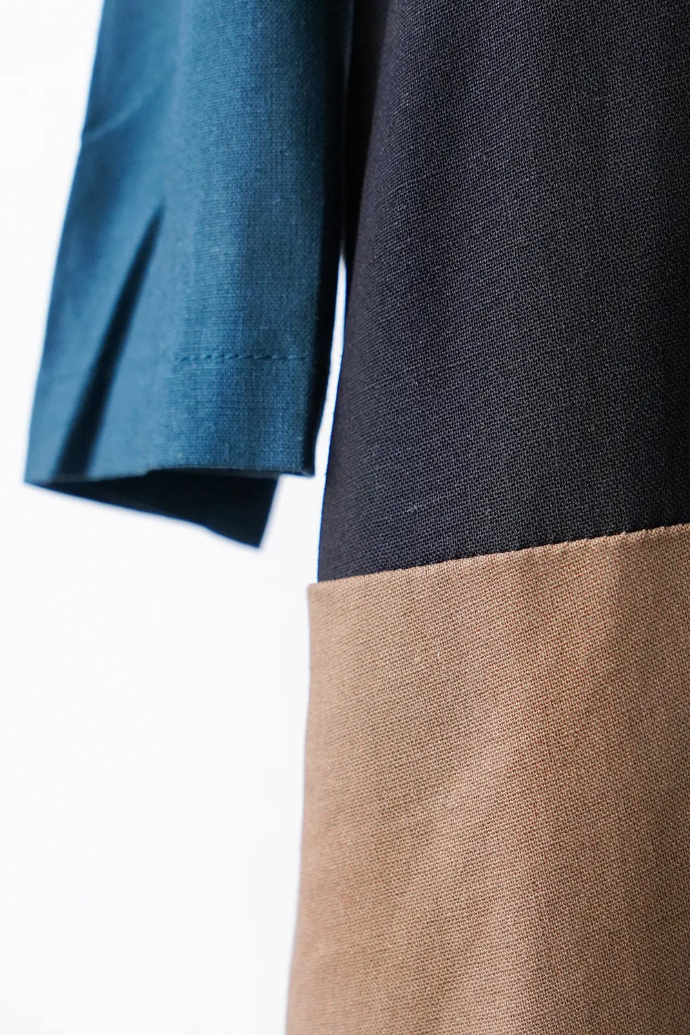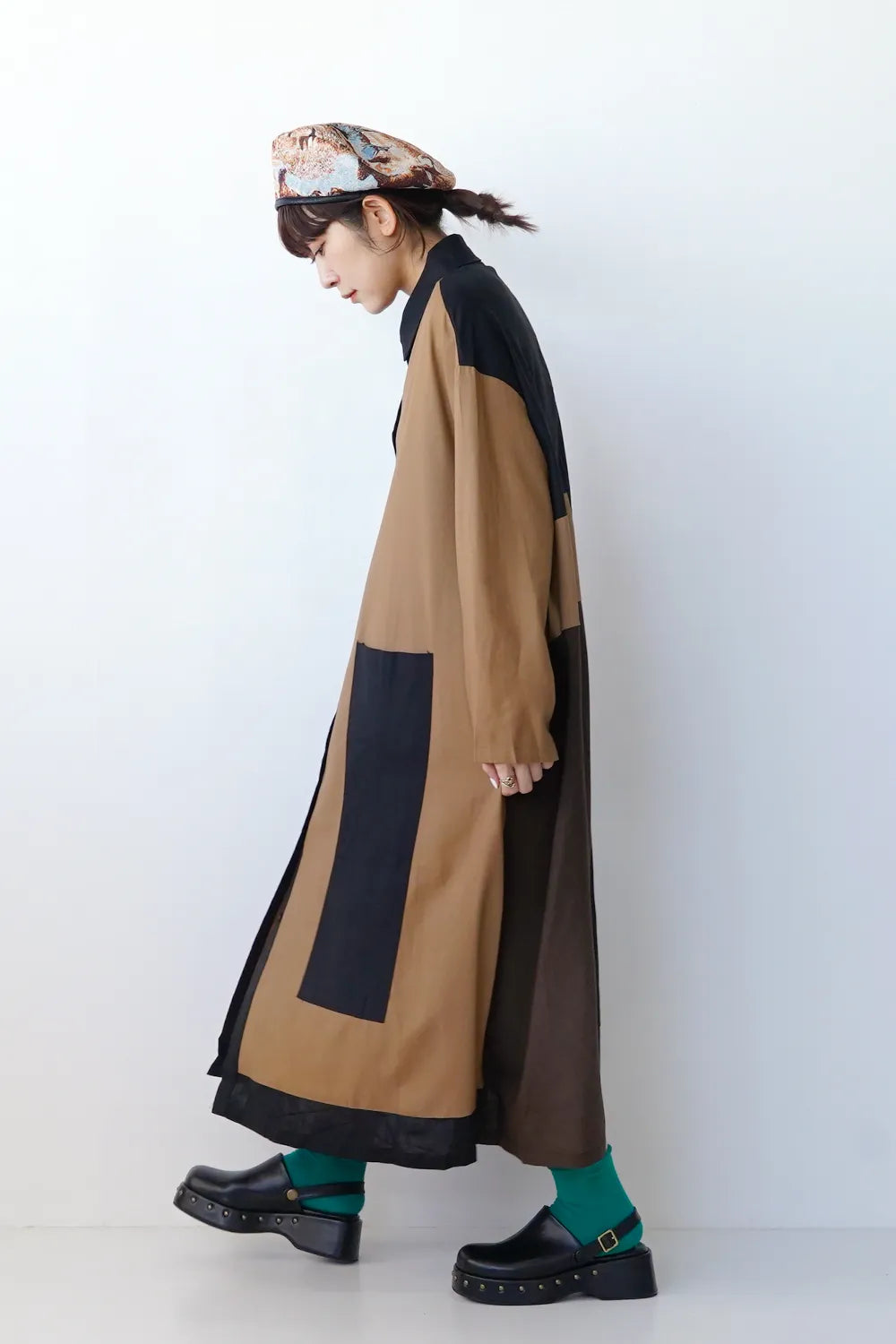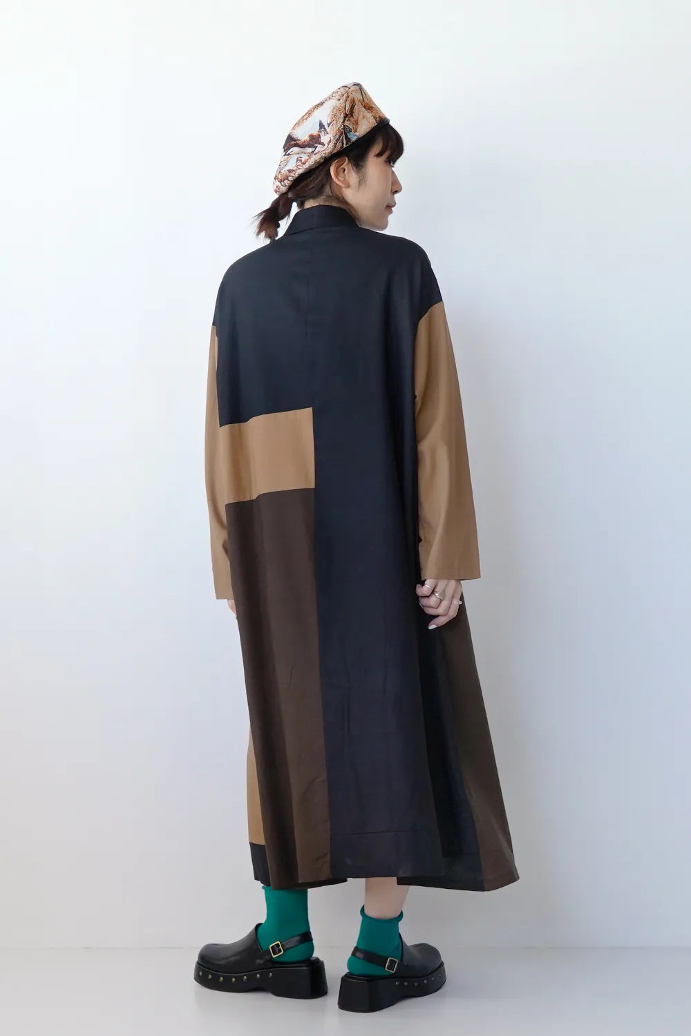 存在感のある大きな配色デザインが印象的なシャツワンピース。身幅をしっかりと取り、身体のラインを拾わないAラインシルエット。幾何学模様のようなブロック切替に異なる色の組み合わせが個性的な1枚。リネン混の通気性のある薄手の生地感生地感なのでロングシーズン楽しめます。両サイドには便利なポケット付き。