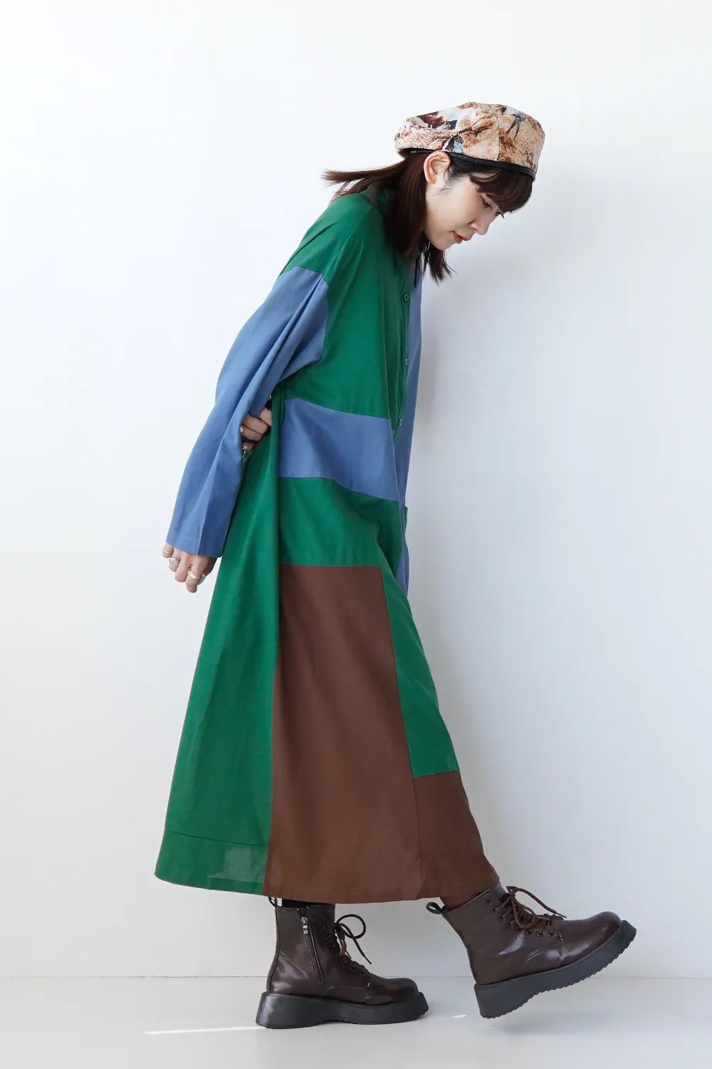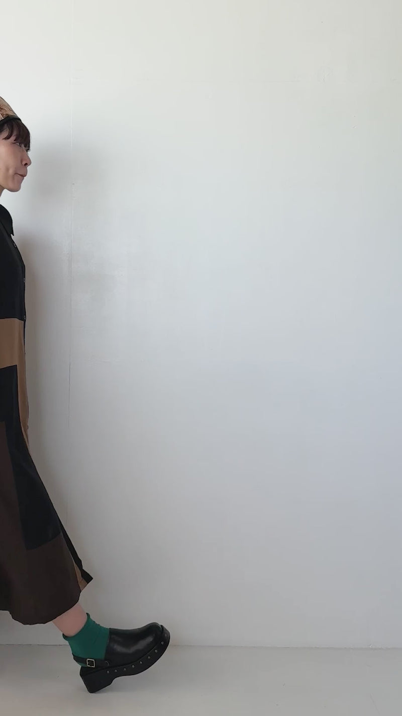 ブロック配色シャツワンピース