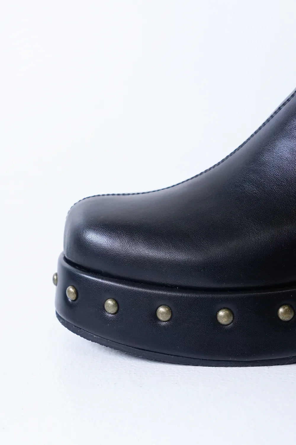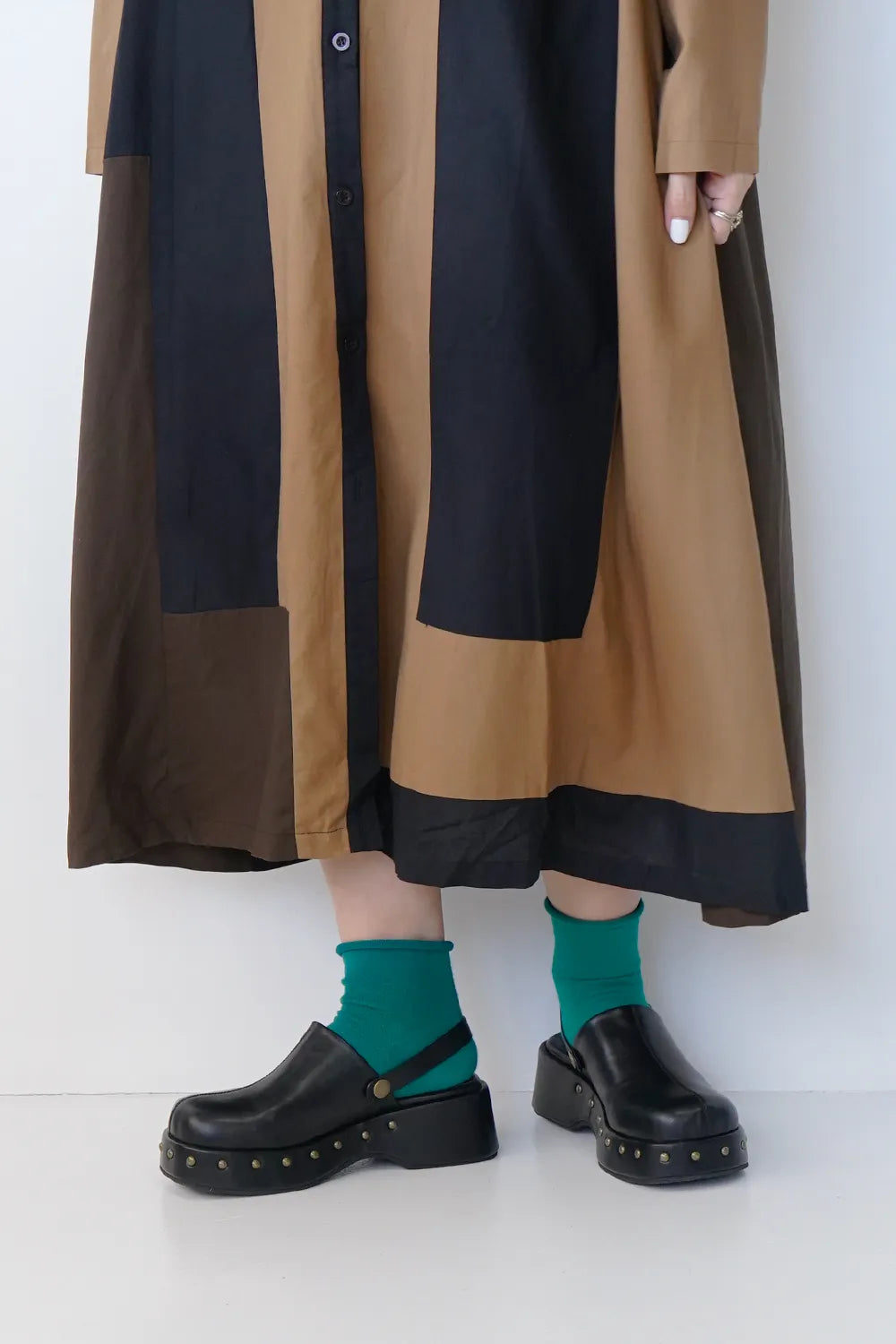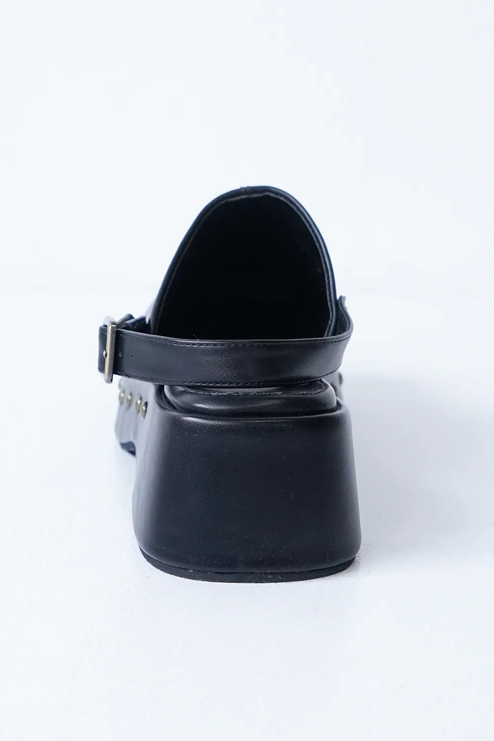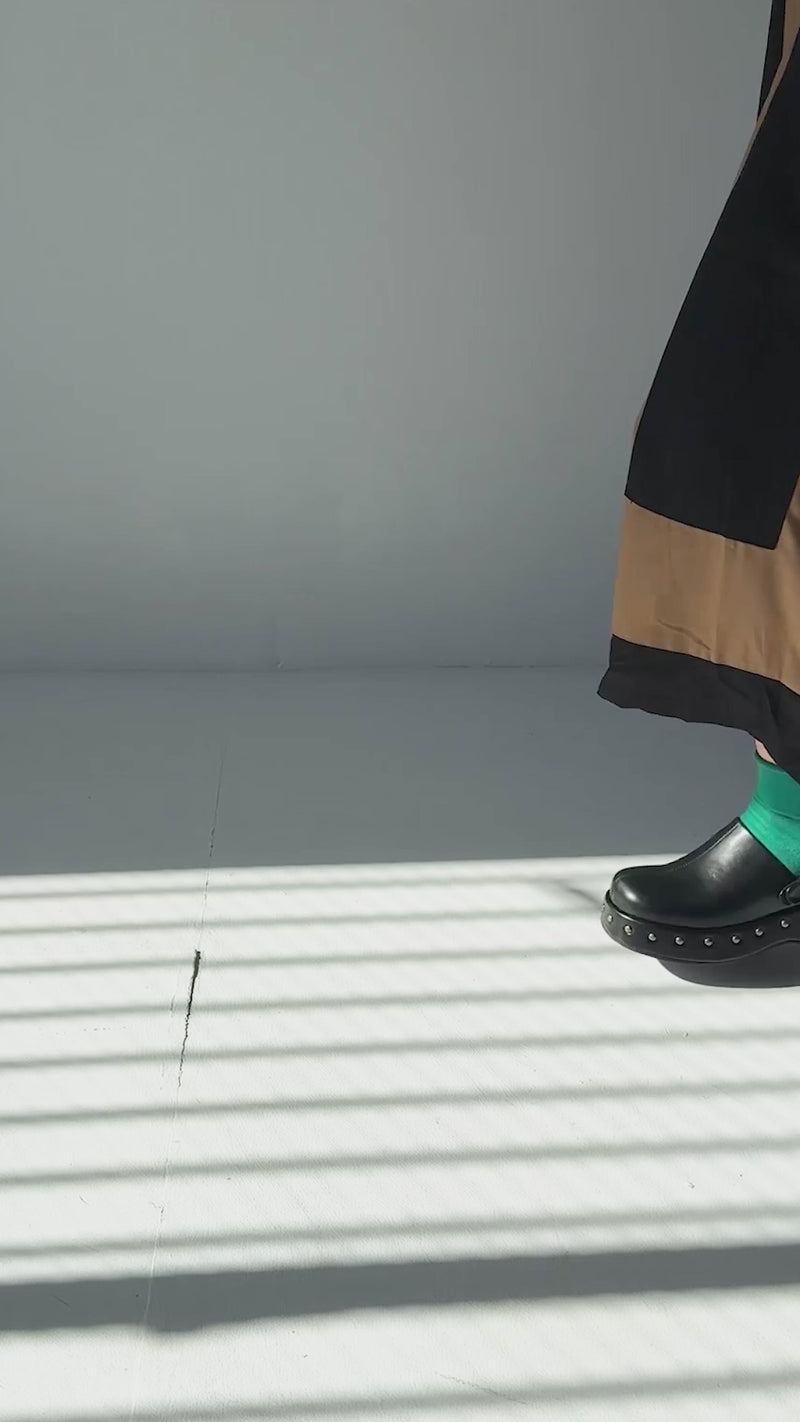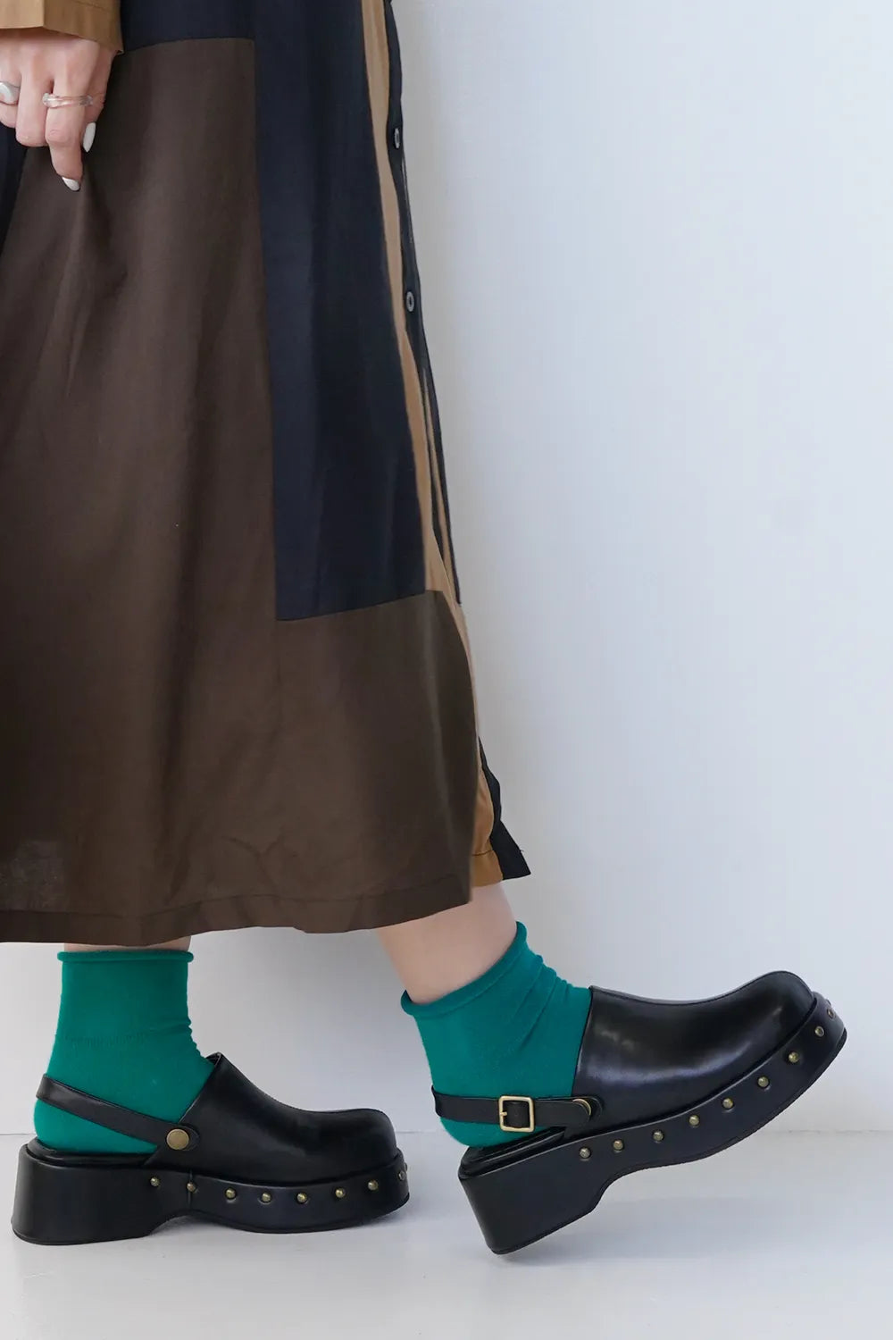丸みのあるシルエットが可愛い厚底サボ。厚底仕様のソールは安定感があり、見た目とは裏腹な軽い履き心地が魅力です。ストラップ部分は前後に可動するだけでなく、ベルトで長さ調整も可能◎カラーソックス合わせがオススメで、ロングシーズン愛用できる一足です。