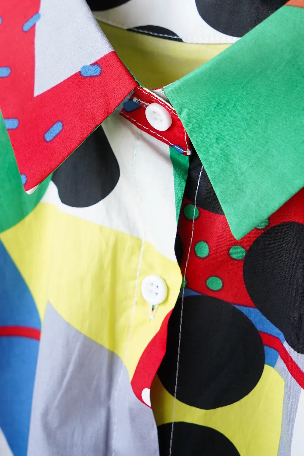 カラフル幾何学アート柄コットンシャツ