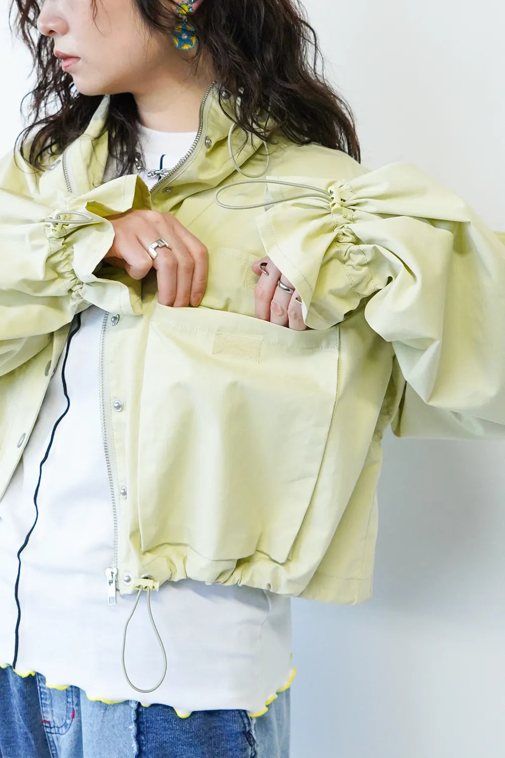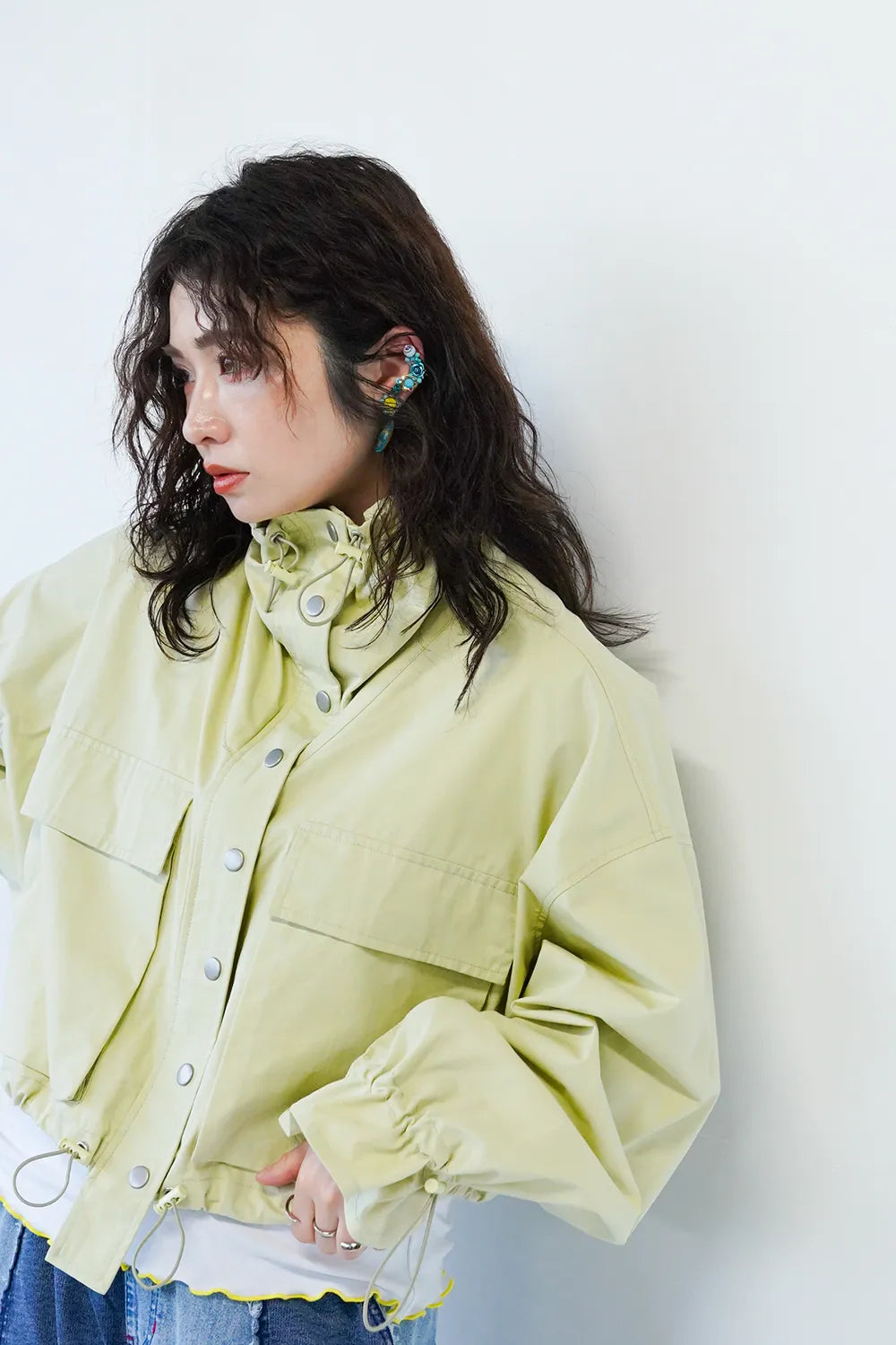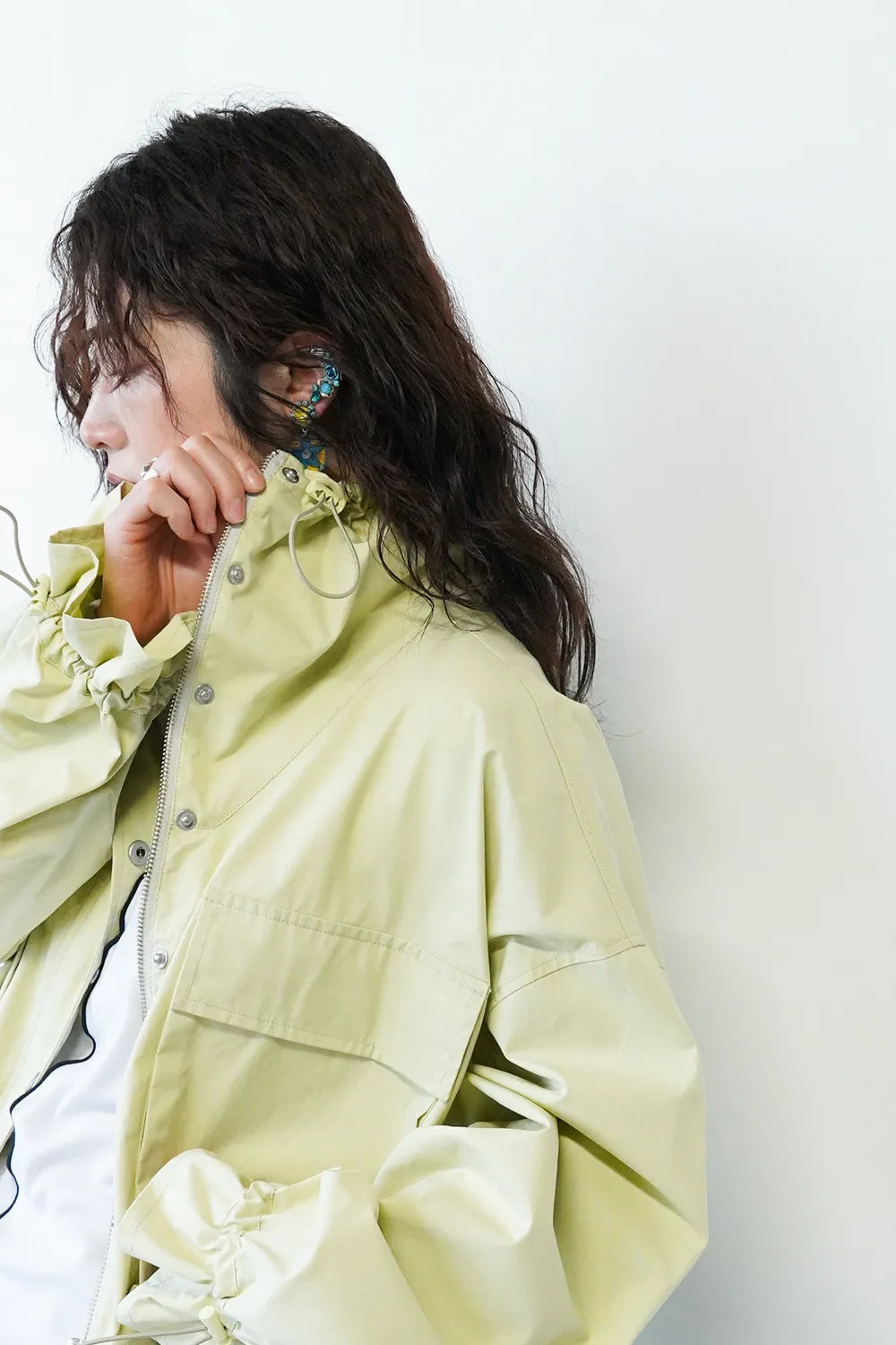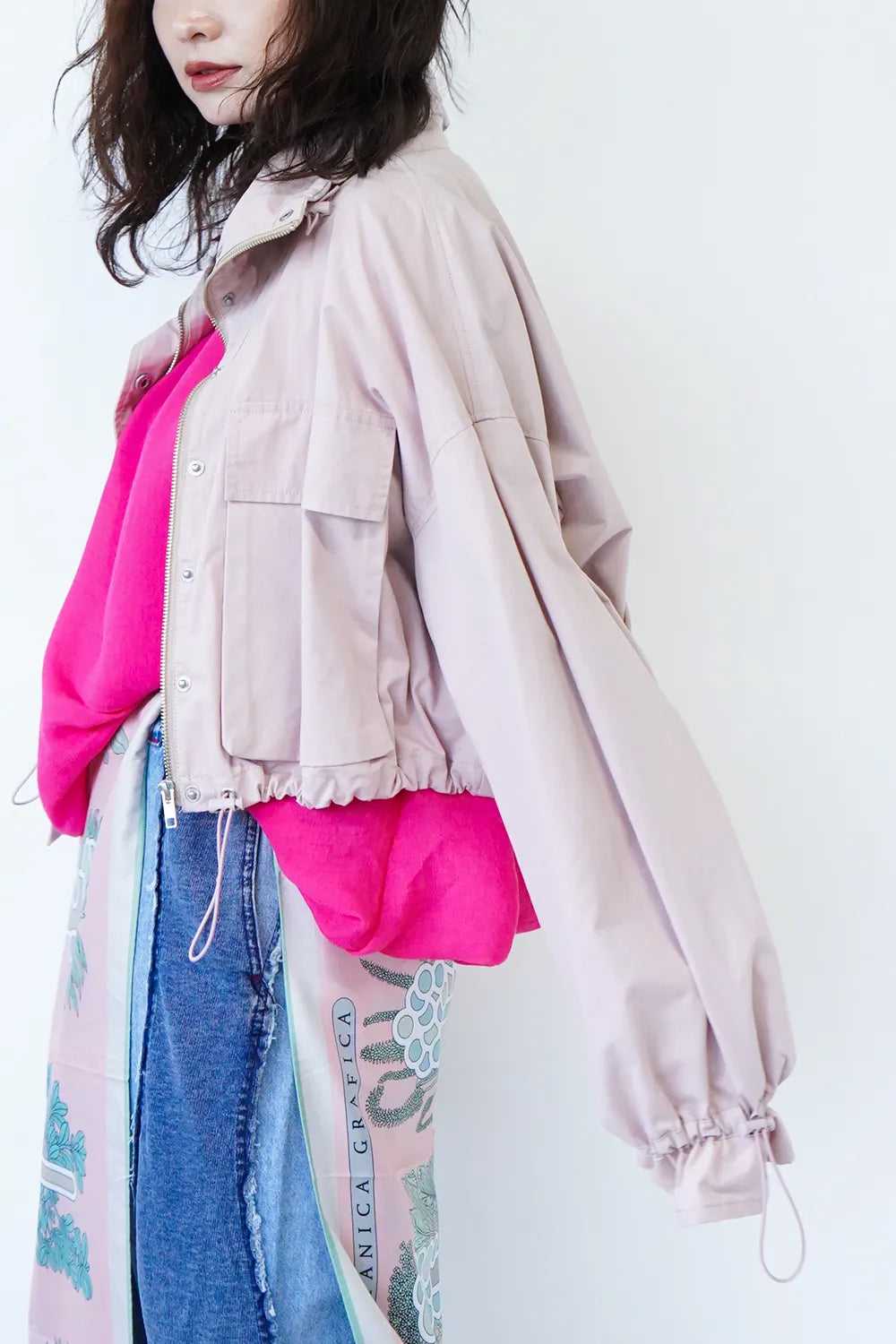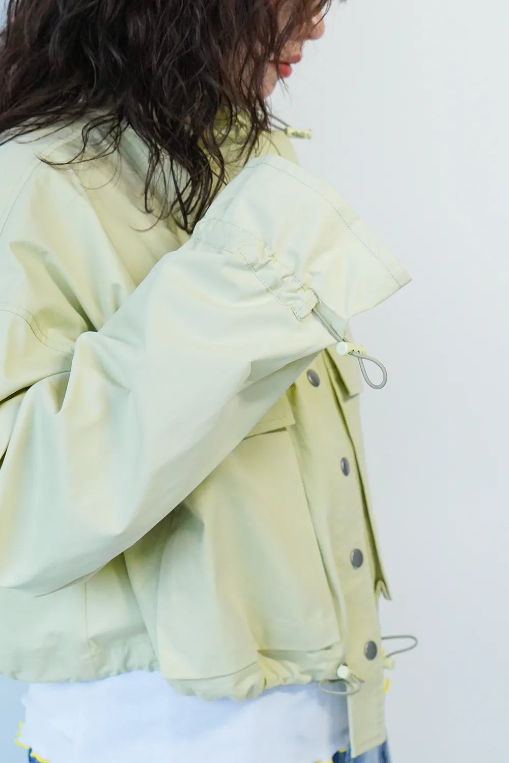 ポケットやドローコードなどユーティリティーディティールをあしらったトレンド感のある【LILA n’ citta】オリジナルのジャケット。ハイネックで首元も暖かく、程よいショート丈でバランスも取りやすいです。首元・袖・裾のドロストを絞って合わせるアイテムによって変化をつけて楽しめます。身幅もゆったりとしたデザインで窮屈感なくサッと羽織って春先に活躍すること間違いなしです。