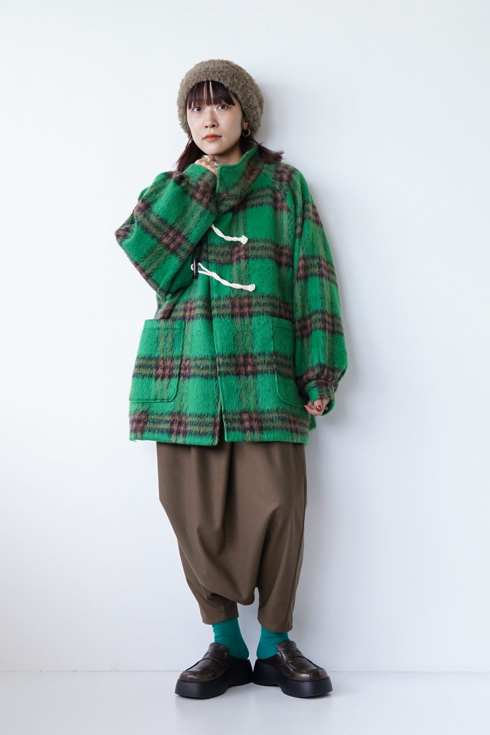 ※チェック柄は本来の裏地を表地で使用しています。裏側が起毛で暖かくなる素材感になります。