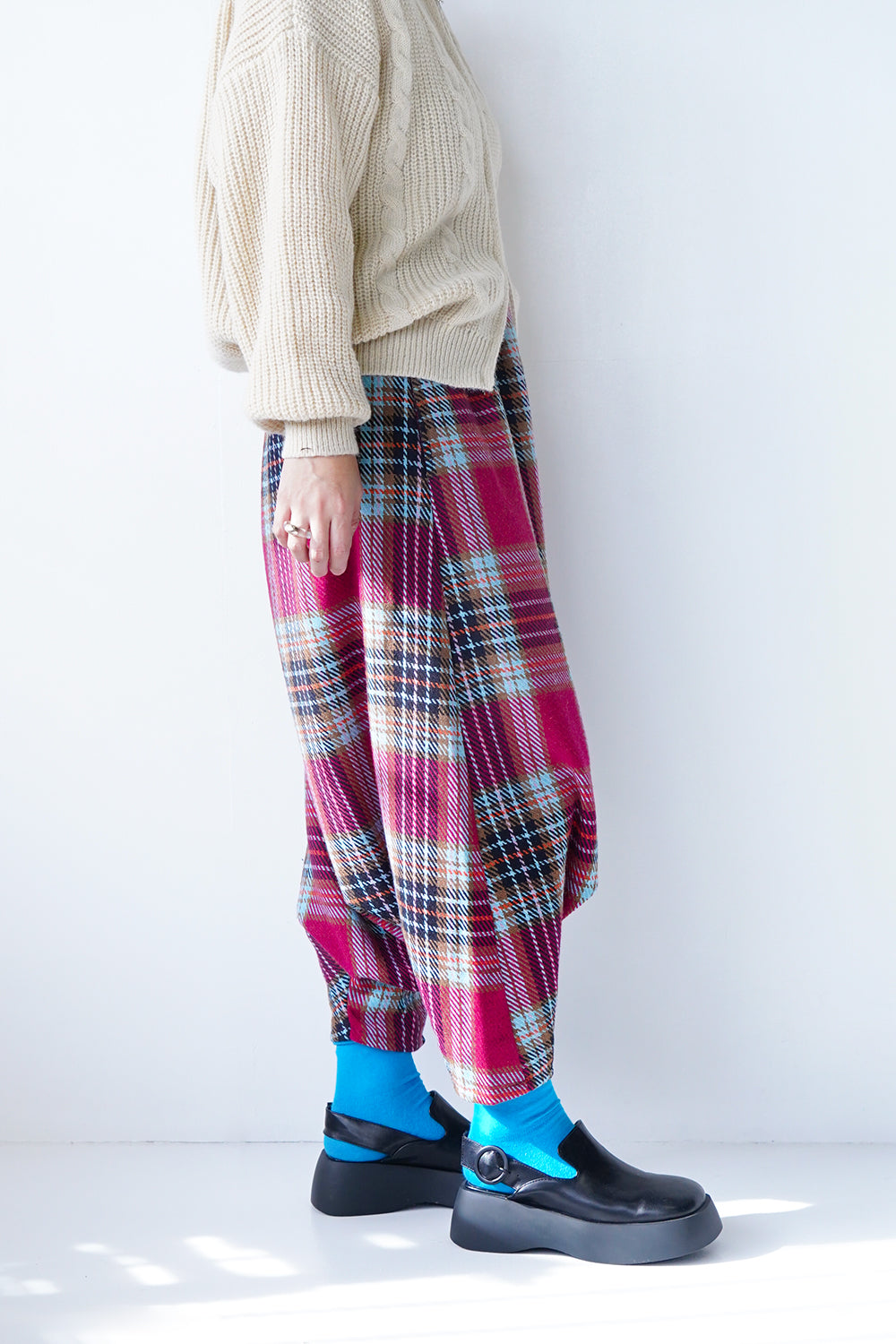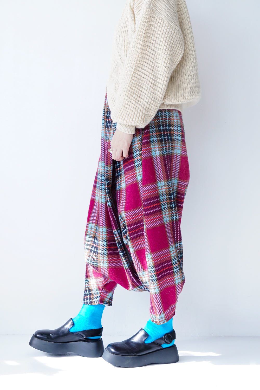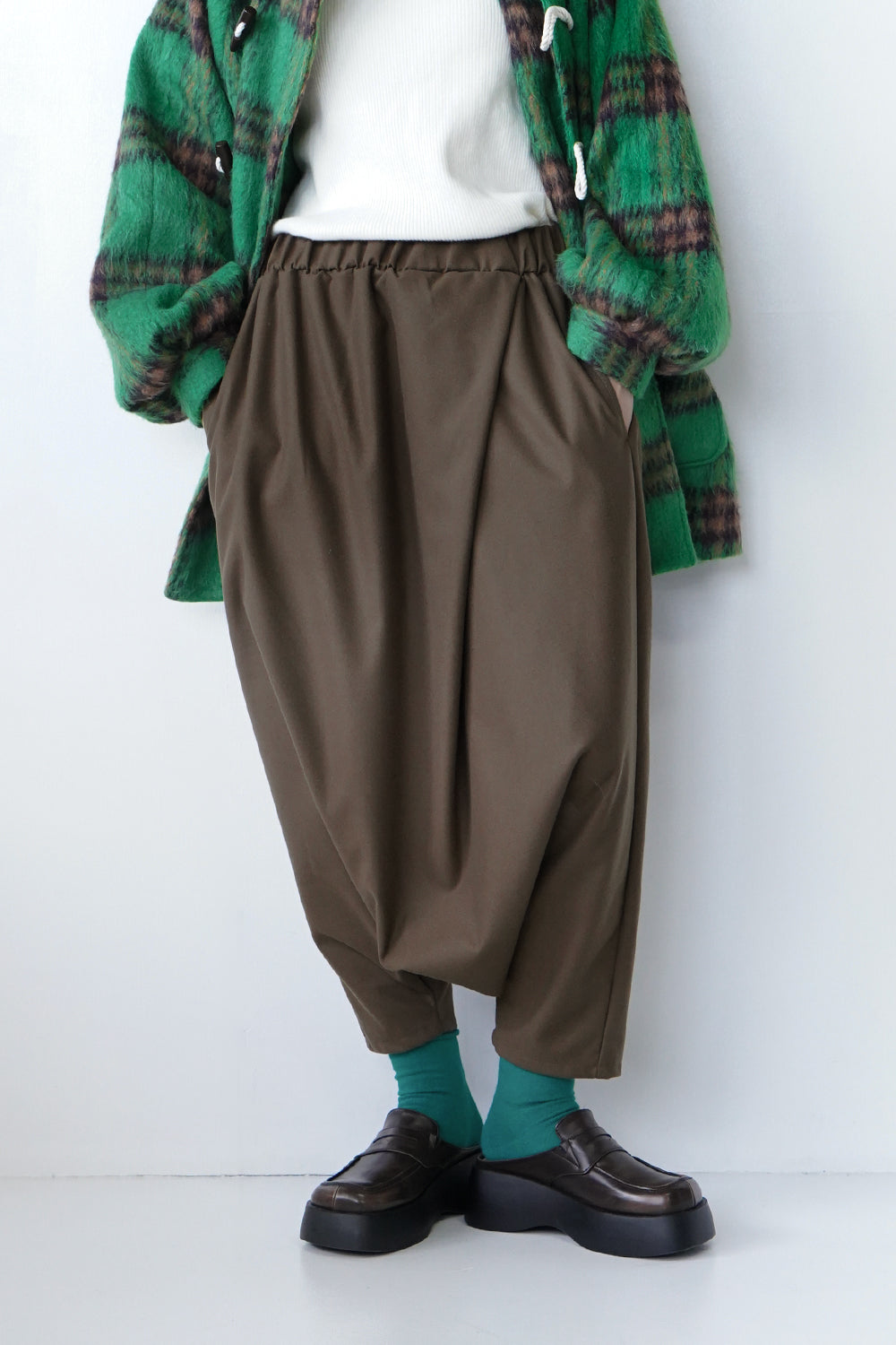 大きなタックが特徴的な【LILA n’ citta】オリジナルのサルエルパンツ。ゆったりとしたシルエットが腰周りを包み込み、体型もカバーしてくれます。落ち感のあるシルエットが綺麗でボリュームが出すぎず品良く穿けるのもポイント。ウエストは総ゴム仕様になったリラックス感たっぷりの1枚です。ベーシックカラーの3色に加え別素材でチェックを1色ポイントで作りました。