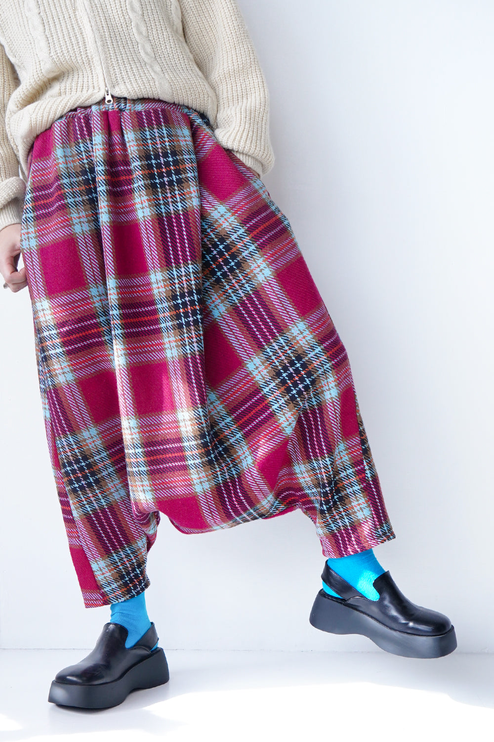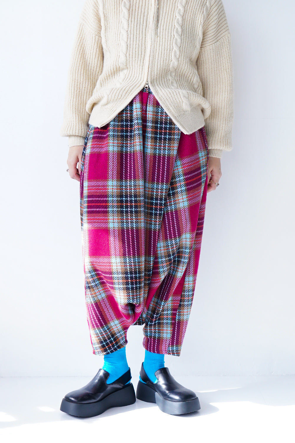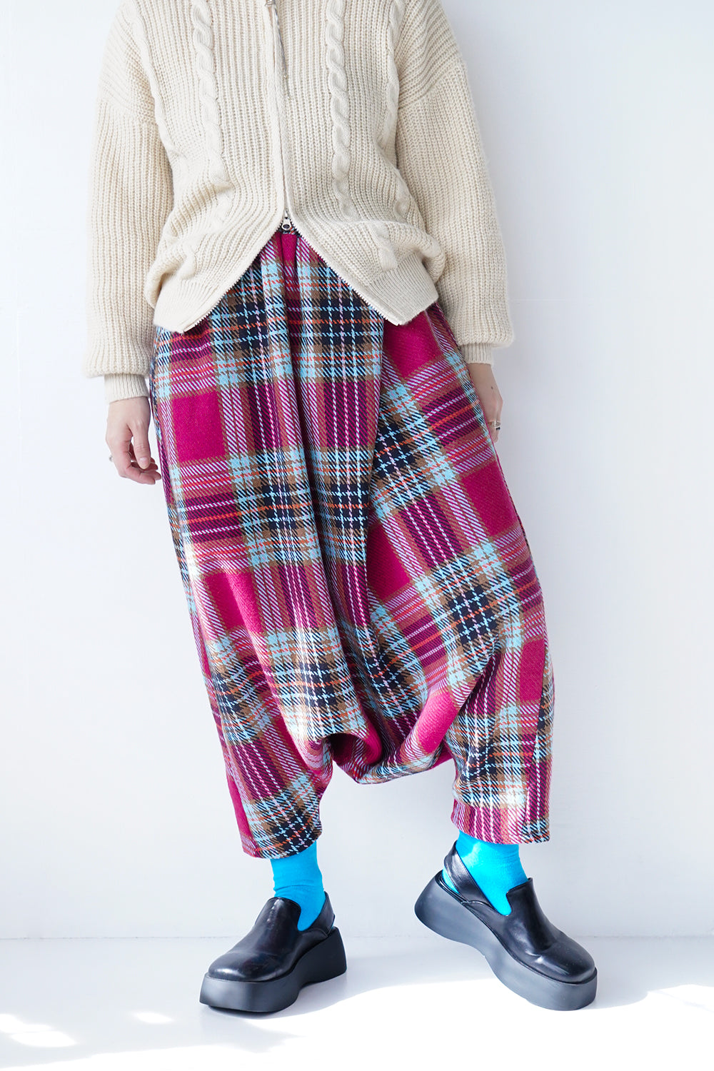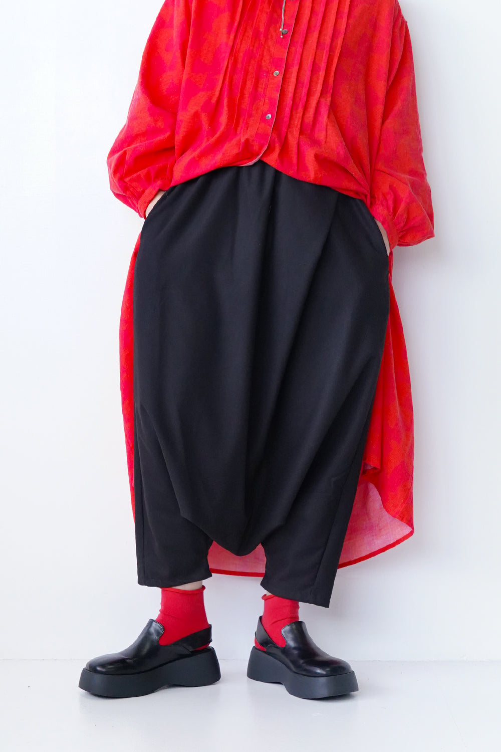 大きなタックが特徴的な【LILA n’ citta】オリジナルのサルエルパンツ。ゆったりとしたシルエットが腰周りを包み込み、体型もカバーしてくれます。落ち感のあるシルエットが綺麗でボリュームが出すぎず品良く穿けるのもポイント。ウエストは総ゴム仕様になったリラックス感たっぷりの1枚です。ベーシックカラーの3色に加え別素材でチェックを1色ポイントで作りました。